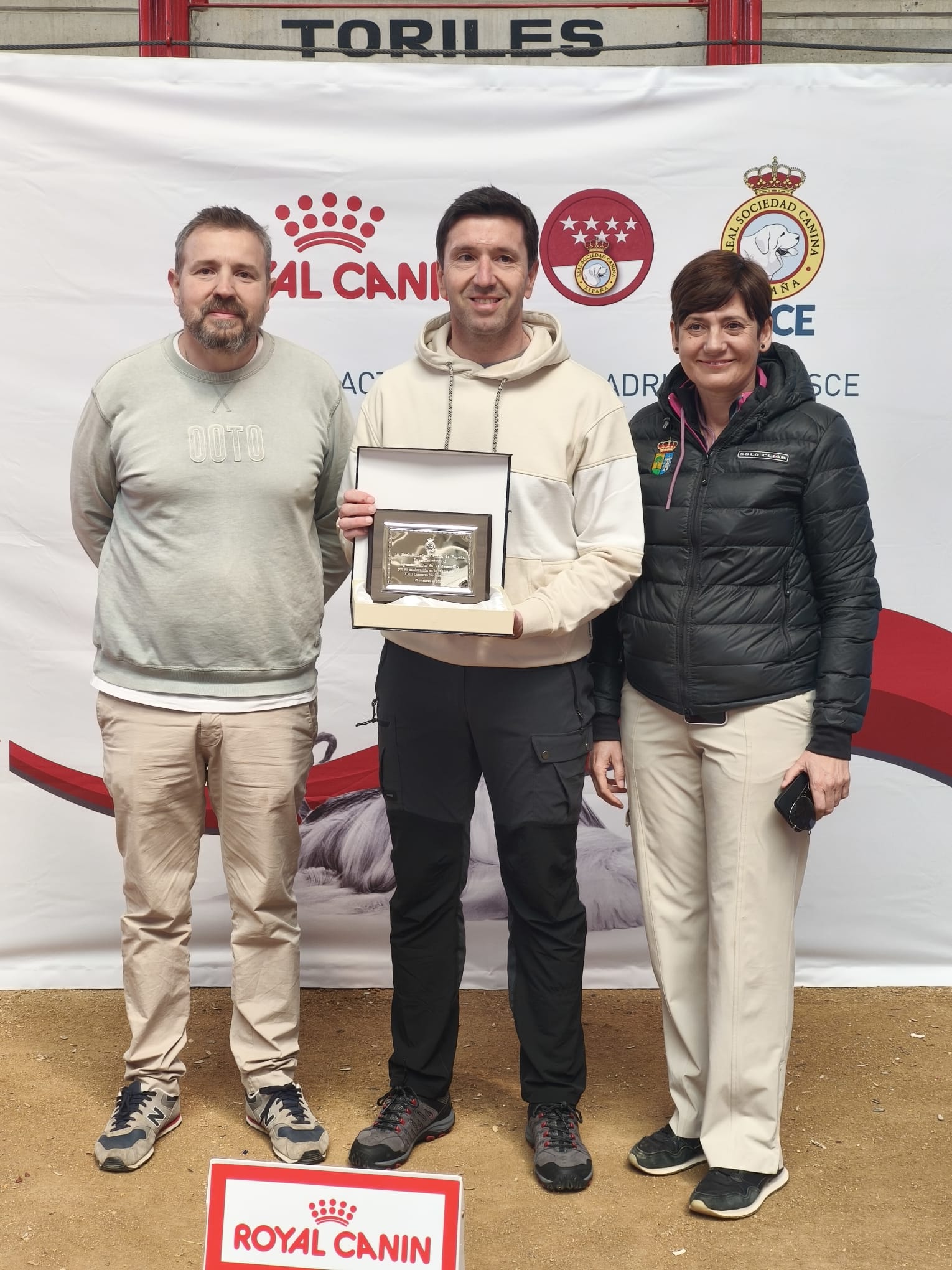 El concejal Miguel Partida, la concejala Rosalía Díaz y José Bolaño, presidente del Comité de Actividades en Madrid de la RSCE y responsable de la organización, acompañaron al regidor en la clausura de un certamen que, edición tras edición, consolida a Valdemorillo como una cita imprescindible para los amantes del mundo canino.