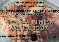El cocido madrileño ha sido declarado Bien de Interés Cultural el 4 de febrero de 2026 por la Comunidad de Madrid. Esta declaración busca preservar su legado histórico, cultural y social, reconociendo su importancia como una expresión de la identidad cultural de la región. Durante este mes se celebra la 16.a edición de la Ruta del Cocido. Se trata de un evento de alto valor gastronómico en la Comunidad de Madrid. Participan 42 restaurantes de Madrid, Toledo y Guadalajara. Entre ellos tenemos el privilegio de contar con el restaurante La Cantina Jaranda de Pedro, situado en plena Sierra Oeste de Madrid. Se puede disfrutar de su maravilloso cocido madrileño cada jueves en el menú diario por un precio de 14,50 € (incluyendo bebida, postre o café) y el fin de semana por 22 € por persona (siempre por encargo). Querido lector, no dudes en reservar tu mesa para probarlo, después podrás votar tu favorito. Con la participación entrarás en el sorteo de diferentes premios, entre ellos tu peso en garbanzos o un magnífico cocido para 10 personas.