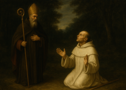 San Benito y San Bernardo en bosque.